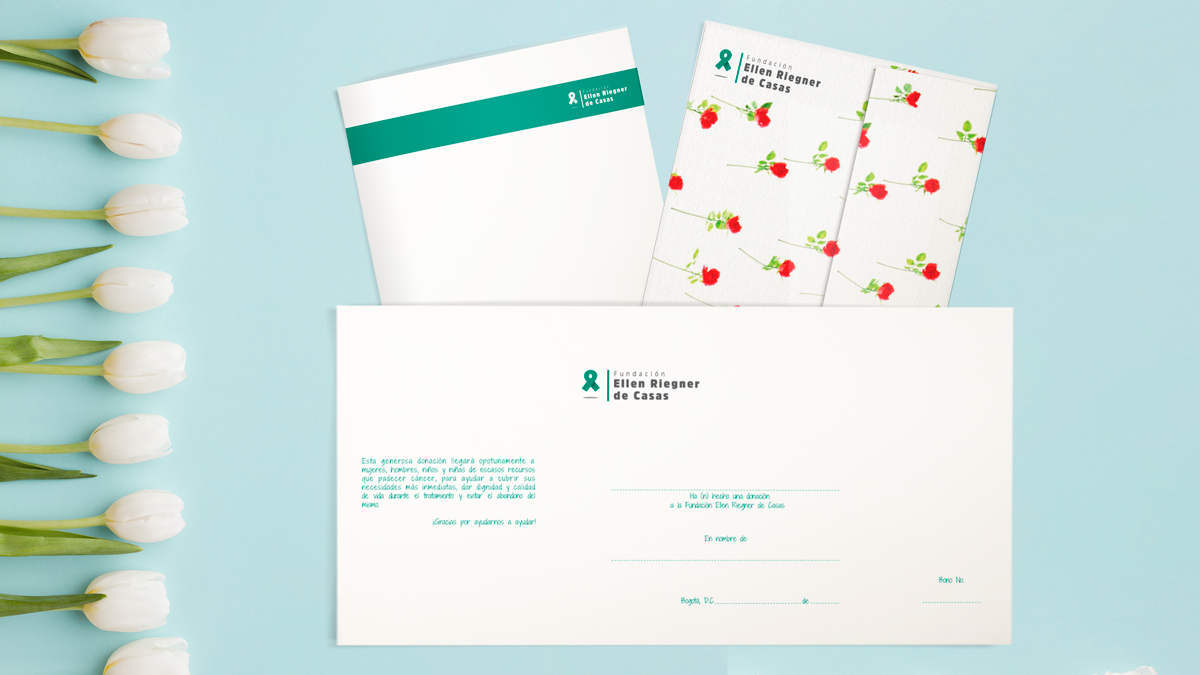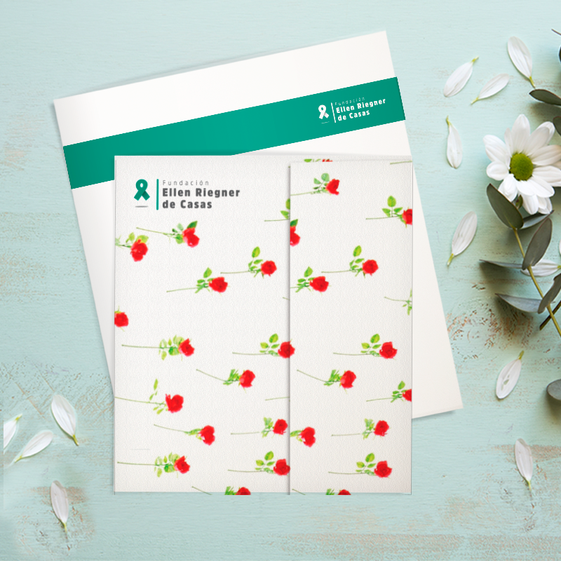 El bono solidario de la Fundación Ellen Riegner de Casas es una hermosa tarjeta con la imagen de la obra de arte “Rosas para Ellen”, donada generosamente por la maestra María Fernanda Cardoso.